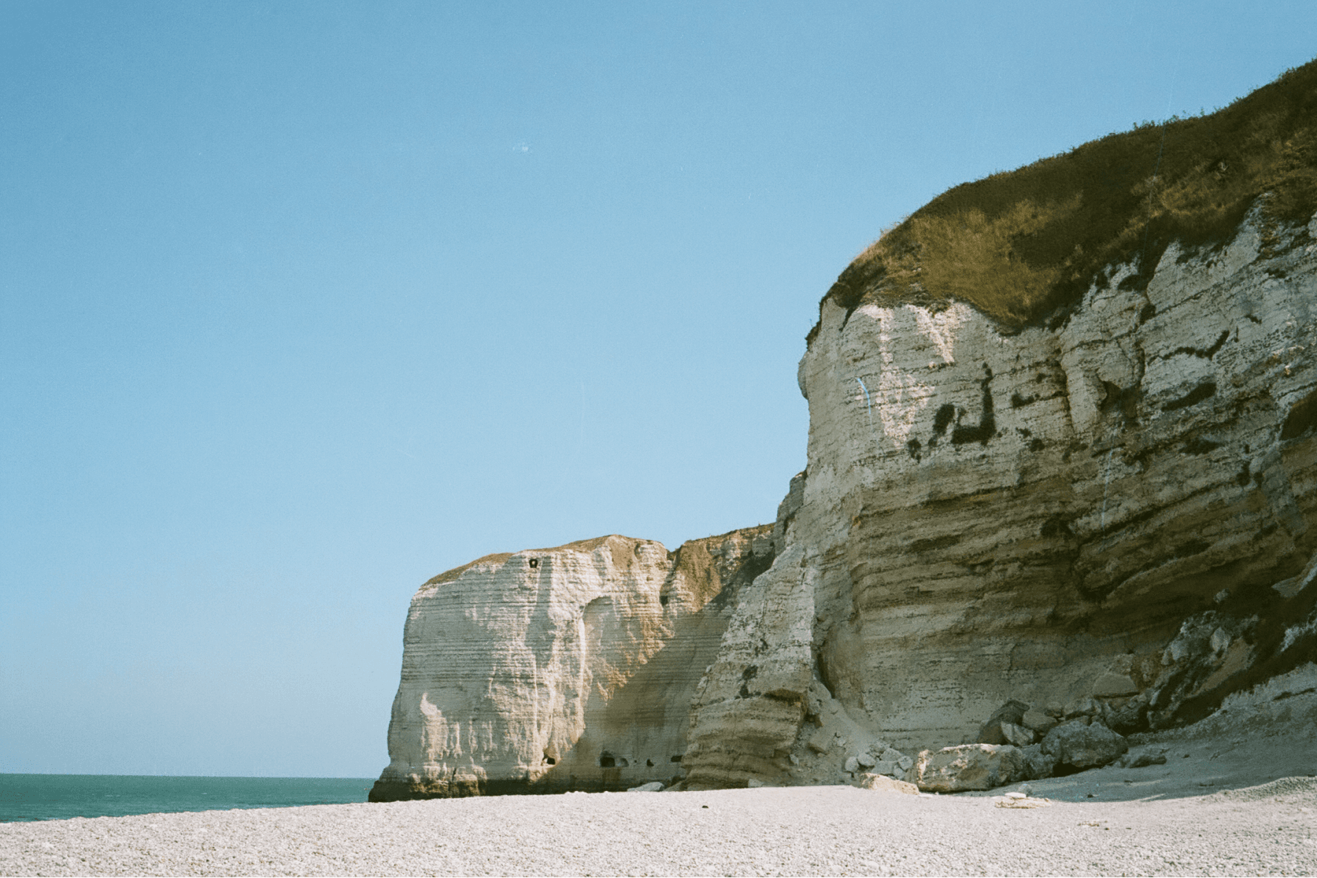 Gothic architecture repeats itself across the territory, precise and unmistakably French. Even in the widest landscapes, its presence feels almost divine — a God both absent and reaching out, suspended between peace and destruction. These photographs were taken on 35mm film with a Voigtländer Bessa R4A. Color images were shot on Kodak Portra 160, black and white on Fujifilm Neopan 100 Acros II. They move between architecture and landscape, between what has been built and what has endured. Normandy is soaked in cruelty, hatred, and death — but also in life, respect, and hope, like the tides that continuously shape its shores, and the lighthouses that quietly keep watch.