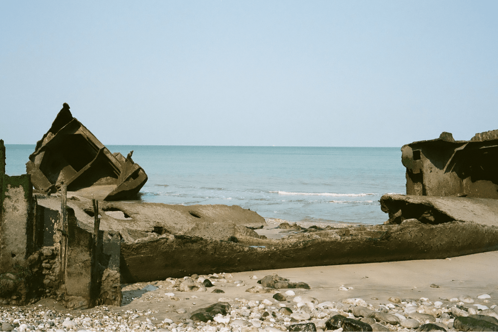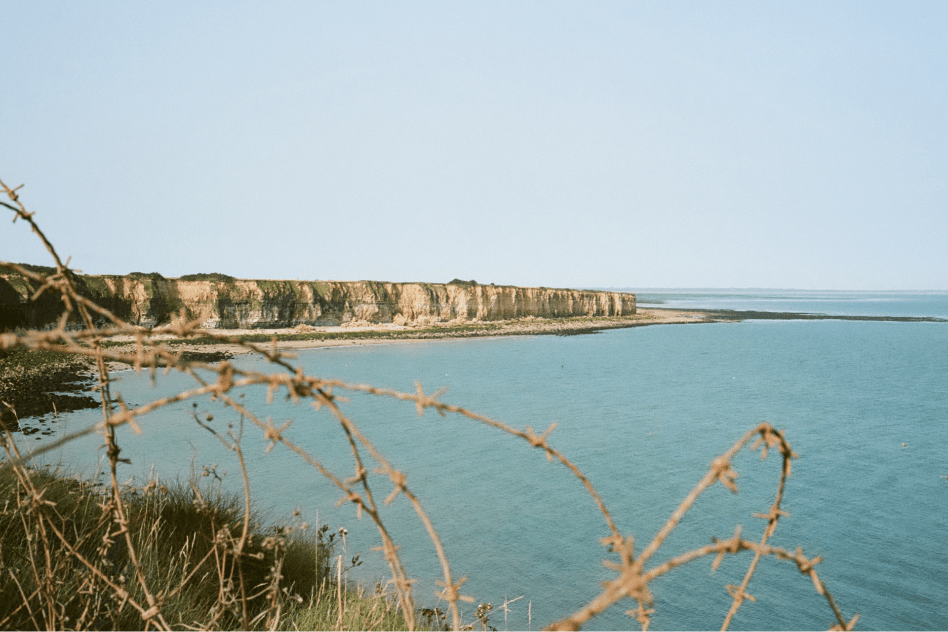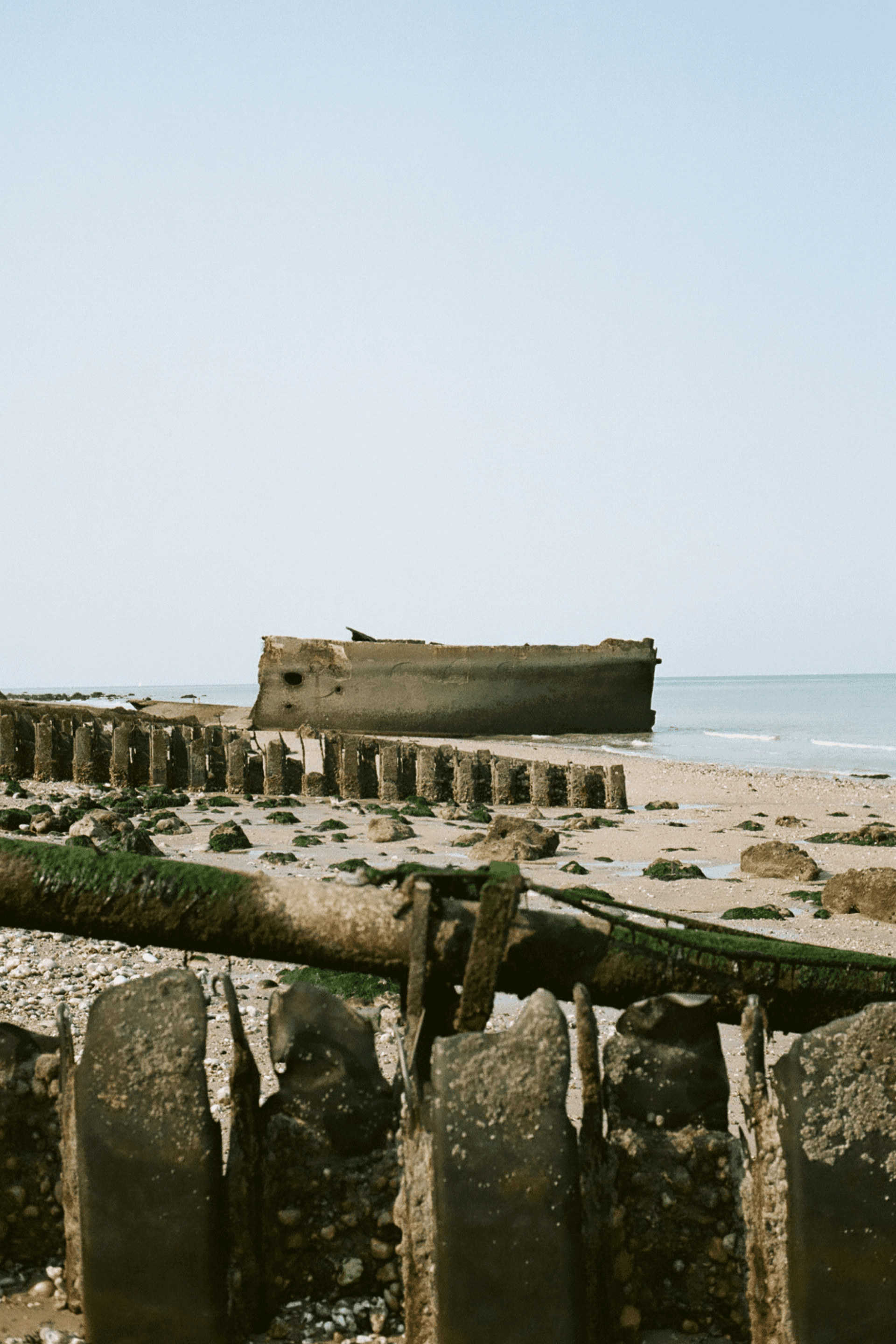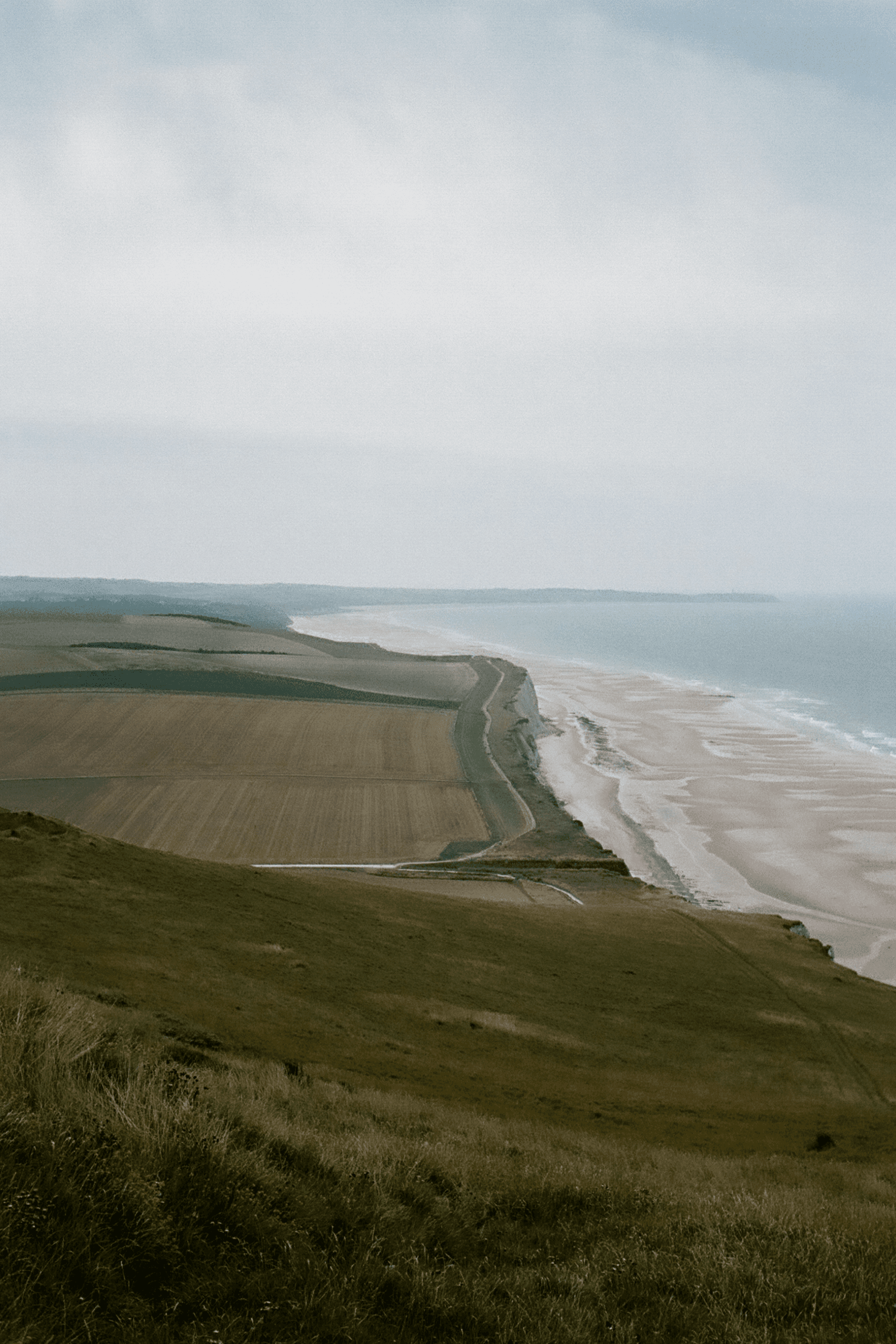 This project was born from a journey that began among the castles of the Loire and ended in Normandy. Moving north felt like shifting from a children’s fairy tale to the tragic song of a medieval minstrel. The heat of the Loire slowly dissolved into cold air, clouds and rain. Northern France carries itself like someone guarding a secret — or nursing an open wound. Coastlines interrupted by noisy bunkers, rising where once there was only the lull of wind. Endless cliffs, dry grass, memorials scattered everywhere. Fading lighthouses rise from the edge of the sea, silent sentinels between storm and horizon. Normandy is saturated with history, with American presence, almost to the point of expectation — as if the language itself might change. It doesn’t. What remains is a land marked by war, but still deeply, stubbornly alive.